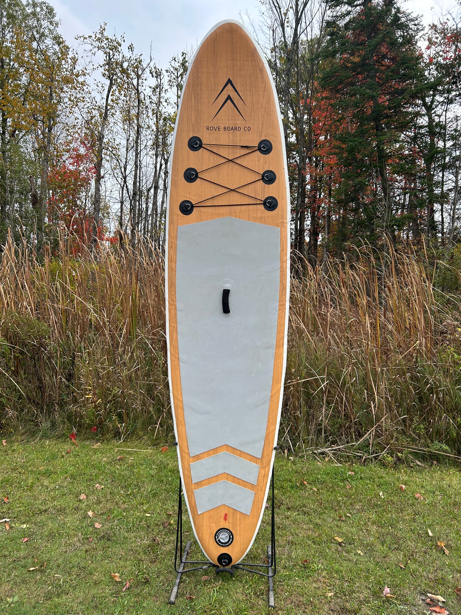This board is built to withstand the elements with a reinforced PVC exterior, double seams, high-density drop stitch, and a strength of up to 20 PSI (pounds per square inch).
